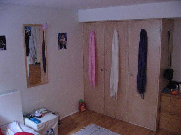 Das ist mein Schrank, der wirklich groß ist. Selbst meine beiden Koffer sind darin verstaut und fast alle meine Schuhe, und natürlich Klamotten. Er ist nicht einmal voll.